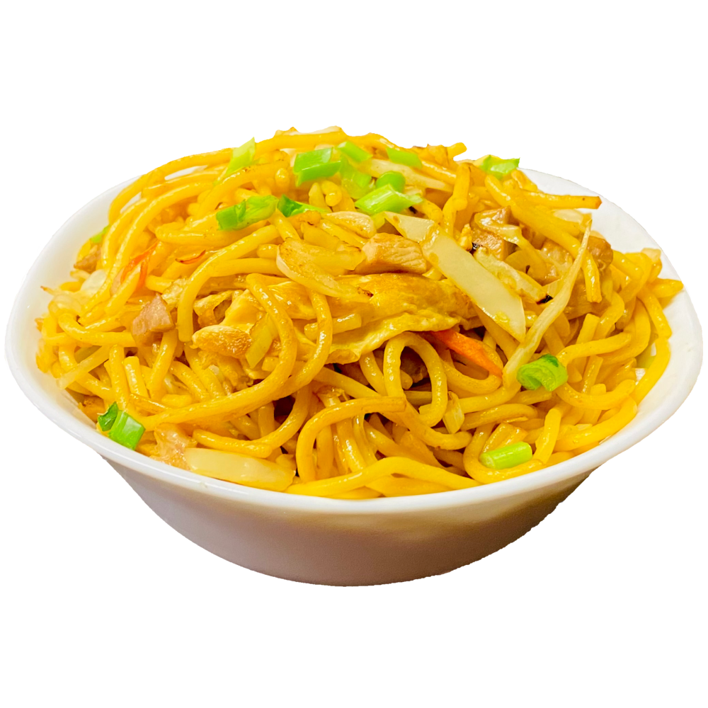 Noodles with egg, cabbage, carrots, leeks, and green onions