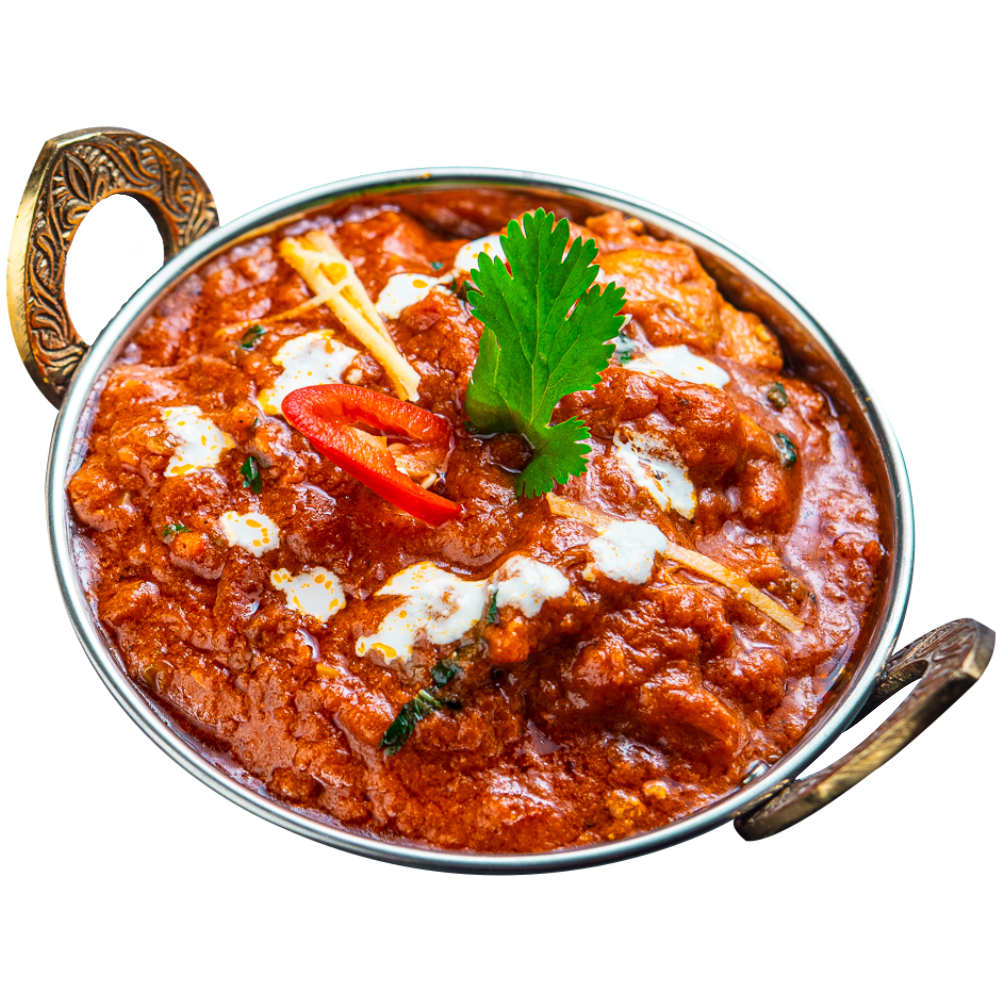 Boiled prawns with onions in spicy and creamy tomato sauce, served with basmati rice