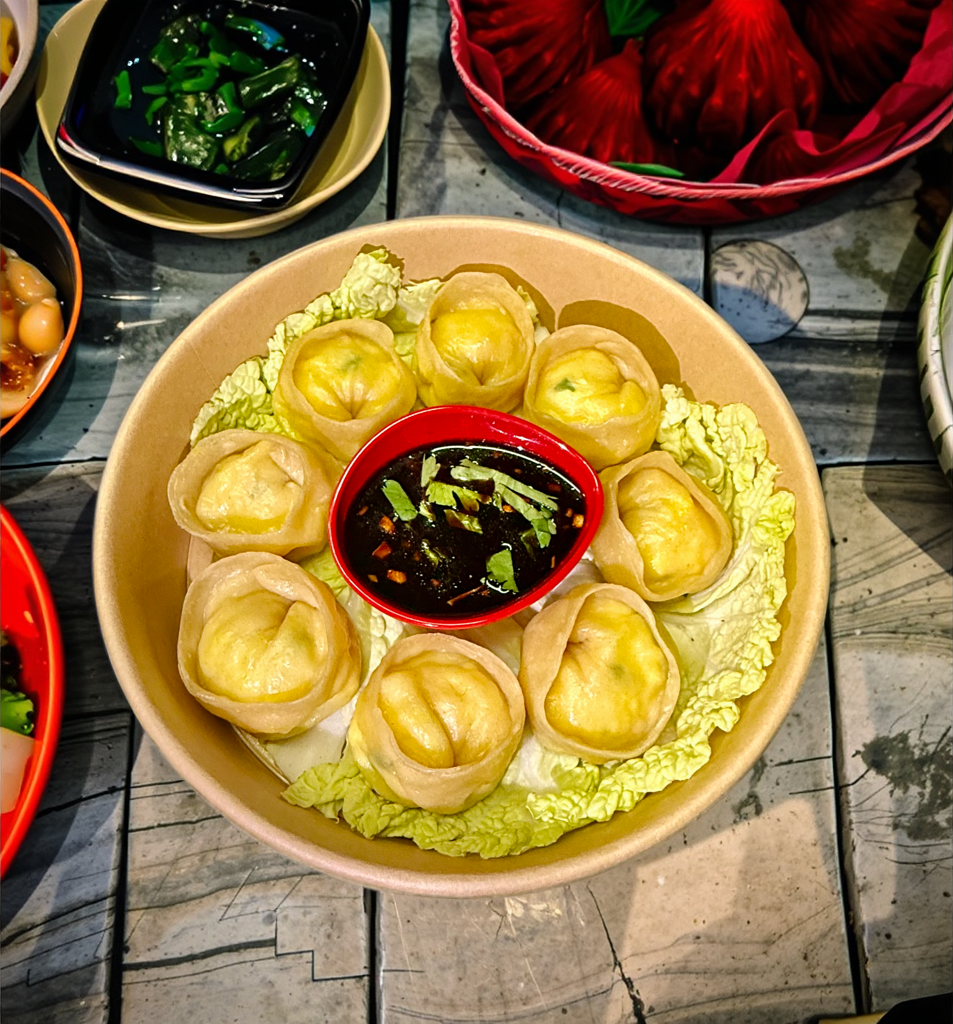 Steamed dumplings with Indian cheese, onions, carrots and coriander served with a spicy sauce