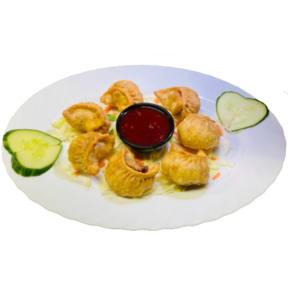 Fried dumplings with pork served with garlic sauce