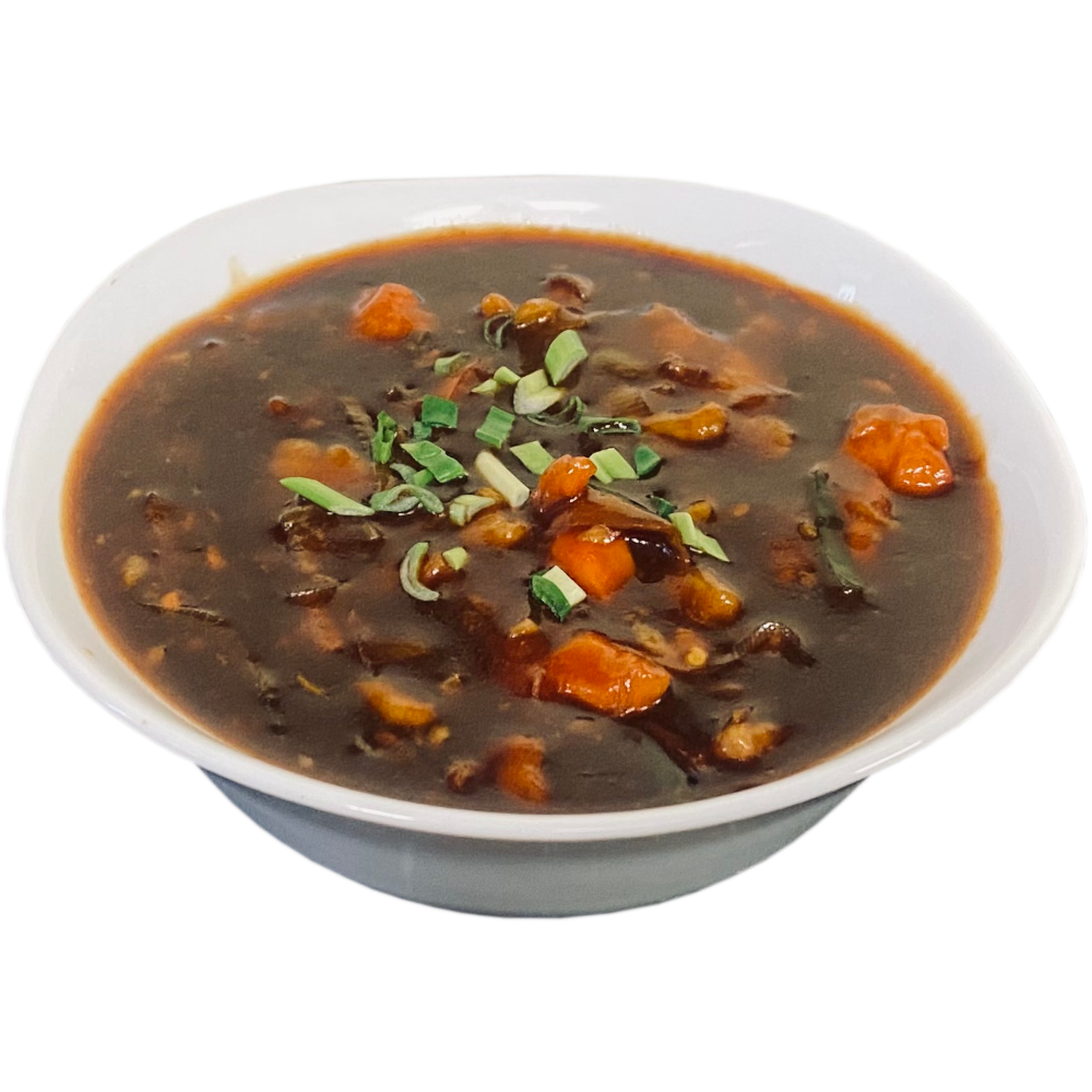 Нарезанная свинина, с луком, фасолью, перцем в соусе из черной фасоли